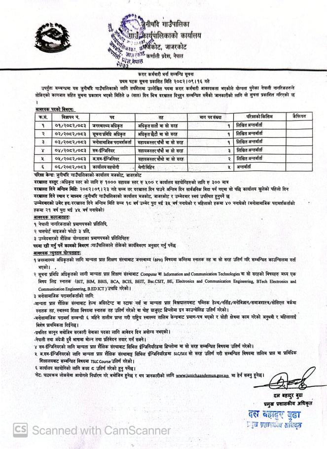 करार कर्मचारी भर्ना सम्बन्धि सूचना (सच्याई प्रकाशन गरिएको)